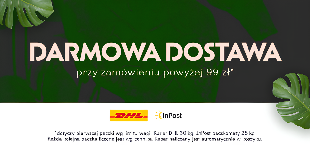 Darmowa wysyłka dotyczy pierwszej paczki wg limitu wagi: Kurier DHL 30 kg, InPost paczkomat 25 kg Każda kolejna paczka liczona jest wg cennika. Rabat naliczany jest automatycznie w koszyku.