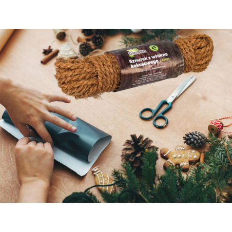 ✔️ Sznurek wykonany ze skręconych włókien kokosowych jest mocny, wytrzymały i odporny na działanie czynników atmosferycznych.
