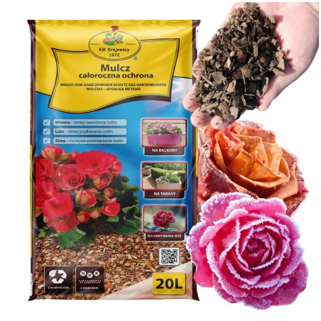 ➡️ Poznaj Mulcz Całoroczna Ochrona 20L marki KIK – to wielozadaniowa ściółka premium, która dba o Twój ogród przez 365 dni w roku. To znacznie więcej niż zwykła kora!