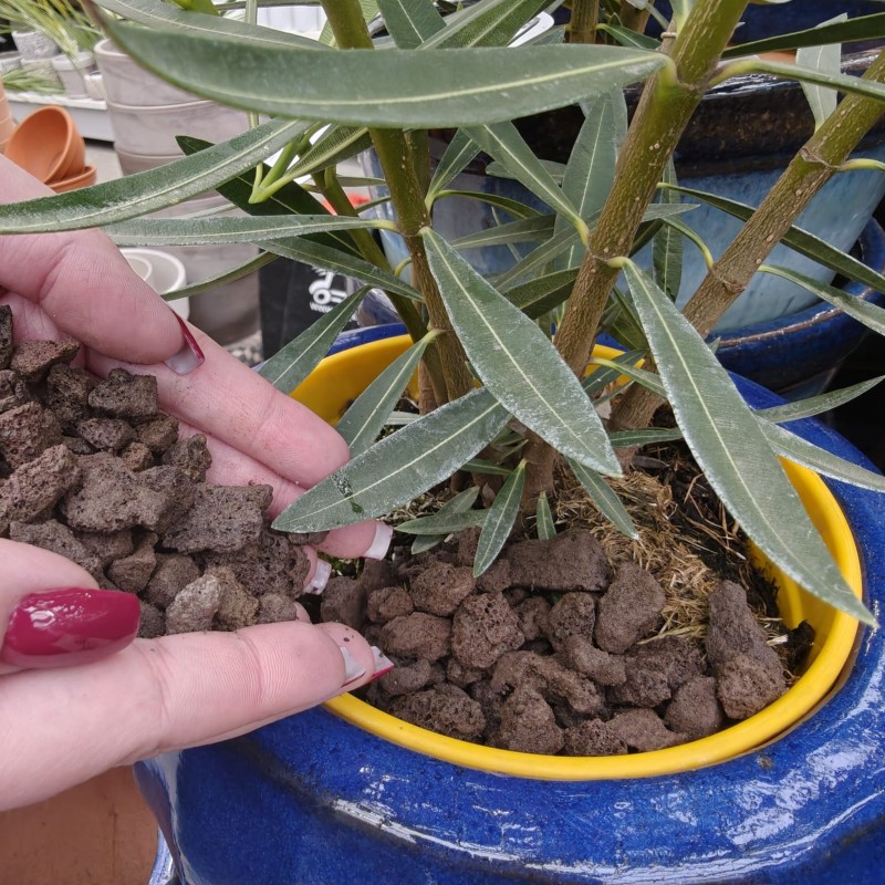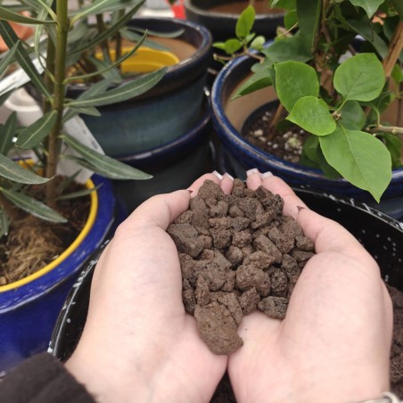 Wymieszać z ziemią w proporcji 1:4 (25% lawy, 75% ziemi) – zapewnia lepszą cyrkulację powietrza i zapobiega zastojowi wody w doniczce.