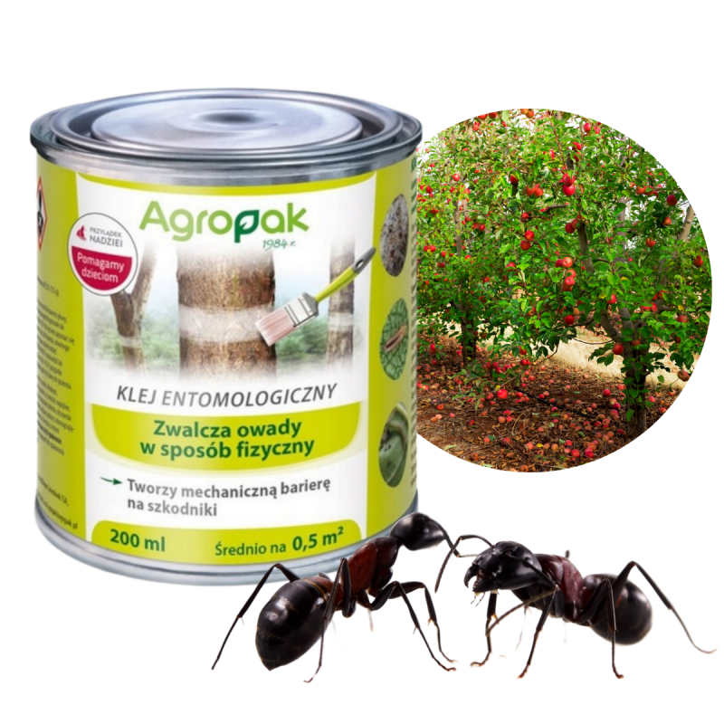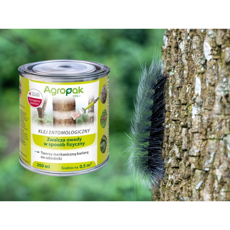 ➡️ Jego fizyczne, klejące właściwości, uniemożliwiają przedostanie się owadów na wyższe partie drzew, a bezbarwna forma sprawia, że staje się niemal niewidoczny na zastosowanej powierzchni.