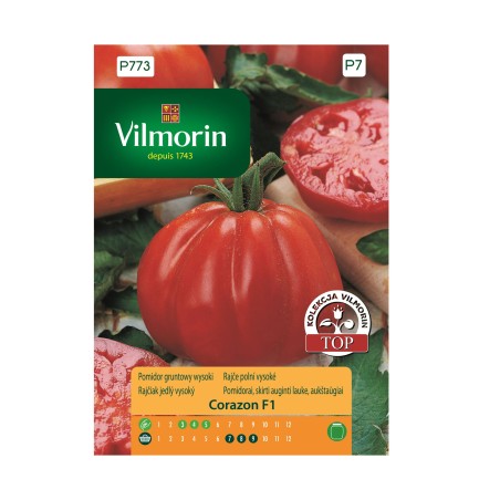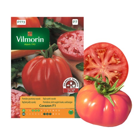 Pomidor gruntowy wysoki Corazon F1 (Vilmorin) – Absolutny król smaku! Odmiana w typie słynnej "sakiewki" (podobna do bawolego serca). Tworzy potężne, żebrowane i niezwykle mięsiste owoce. Oznaczenie F1 gwarantuje wysoką odporność na choroby i gigantyczny plon, jakiego nie dadzą Ci zwykłe nasiona.
