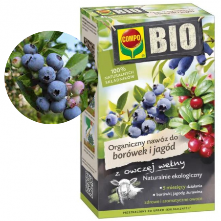☘️ Dzięki temu Compo Bio Organiczny nawóz do borówek i jagód spełnia restrykcyjne wymogi europejskie i może być stosowany w uprawach ekologicznych.