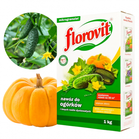 ✅ Florovit Nawóz do OGÓRKÓW i innych ROŚLIN DYNIOWANYCH to granulowany, kompleksowy nawóz, który dostarcza składników pokarmowych w ilościach i formach dostosowanych do potrzeb wszystkich odmian ogórków oraz roślin dyniowatych, takich jak dynia, cukinia, kabaczek, patison, melon, arbuz, kiwano, tykwa, itp.