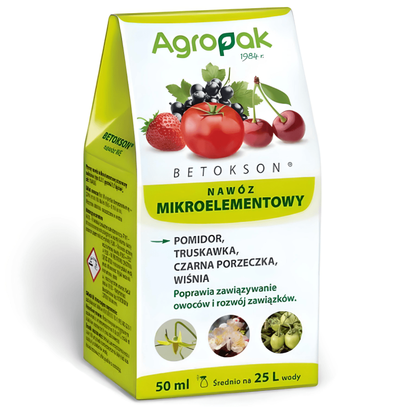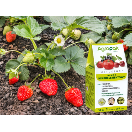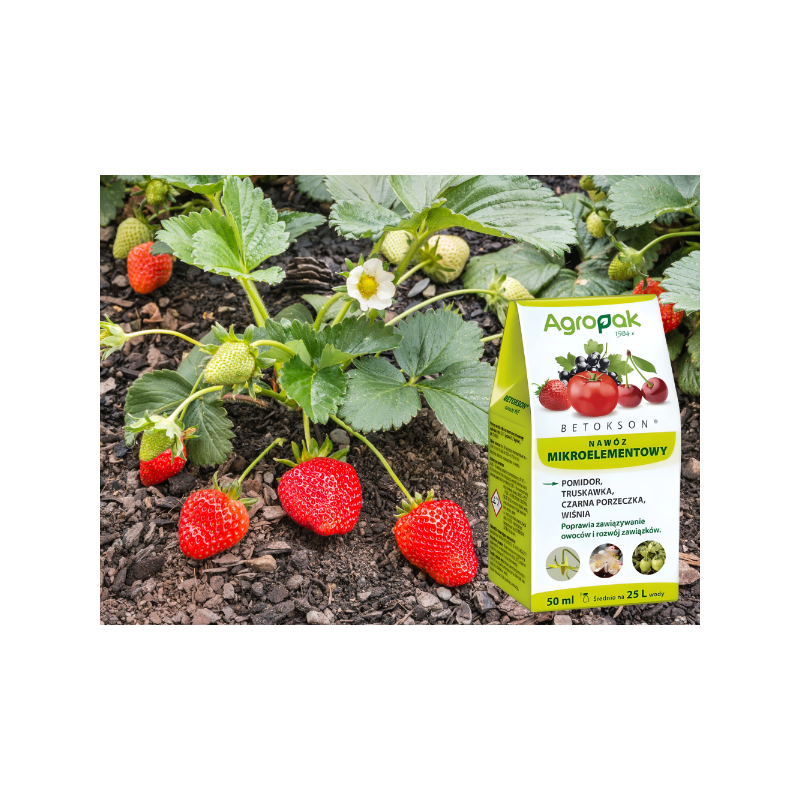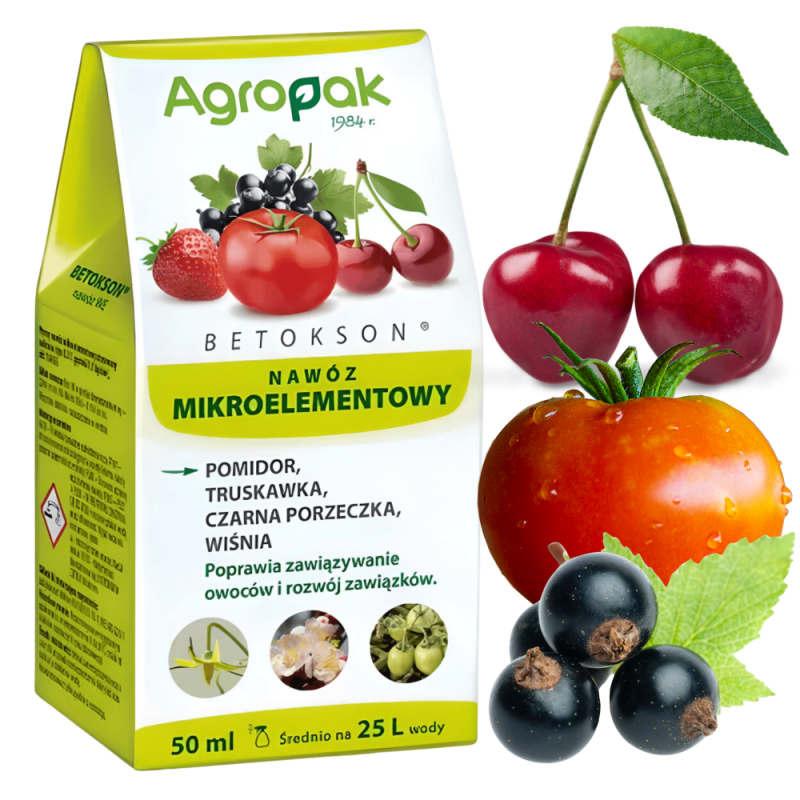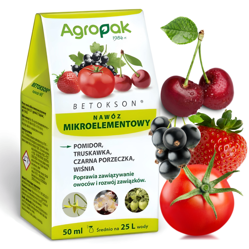 ✅ Betokson to płynny nawóz mikroelementowy do stosowania w uprawie pomidora, truskawki, porzeczki czarnej oraz wiśni.