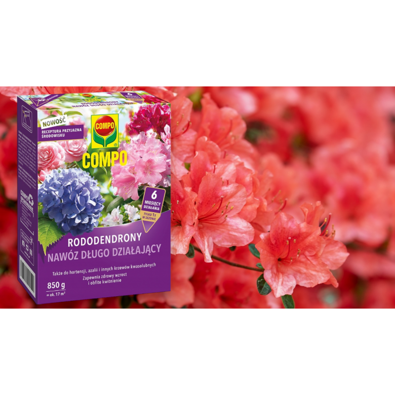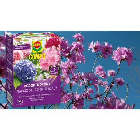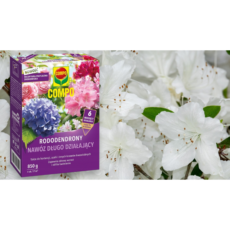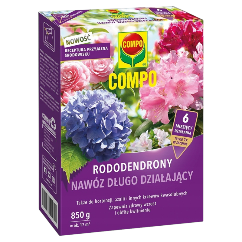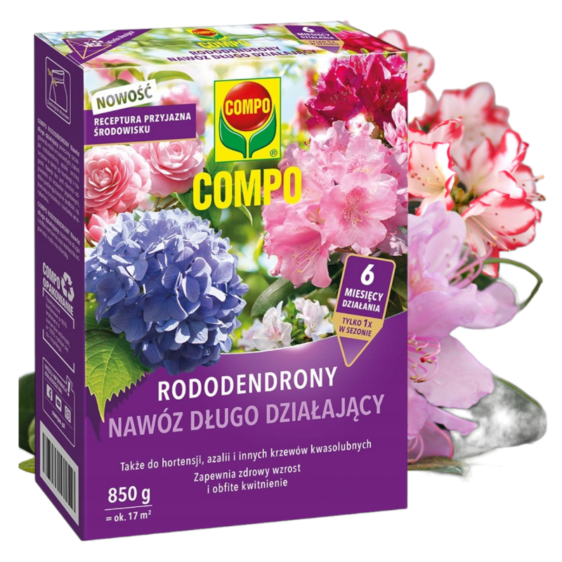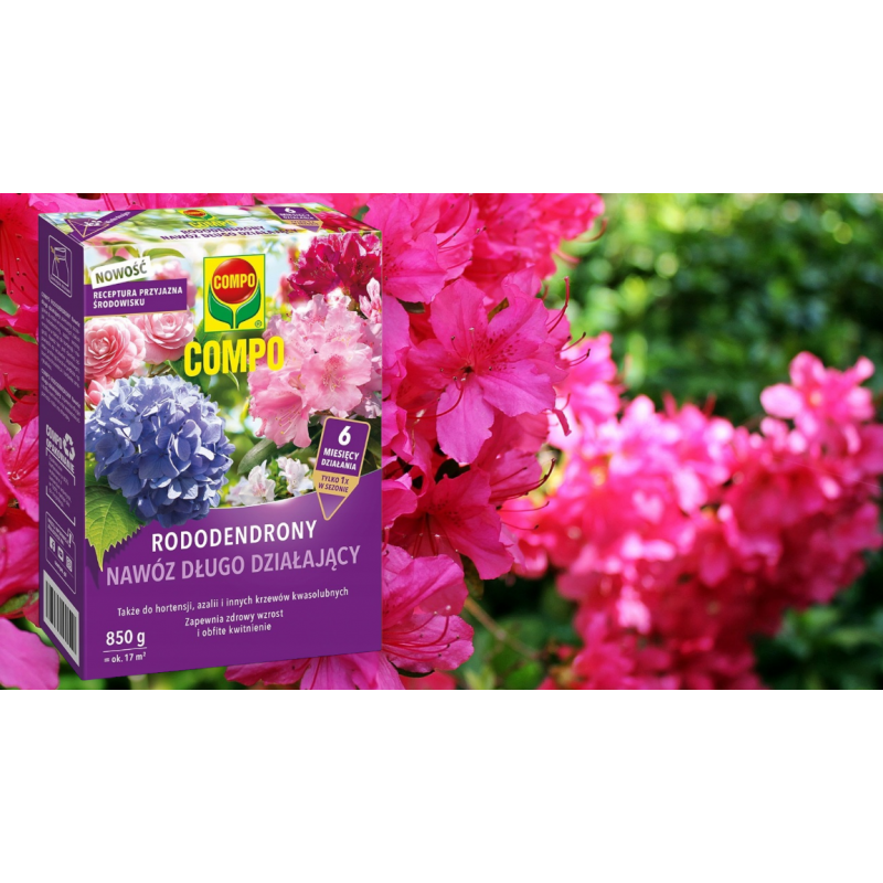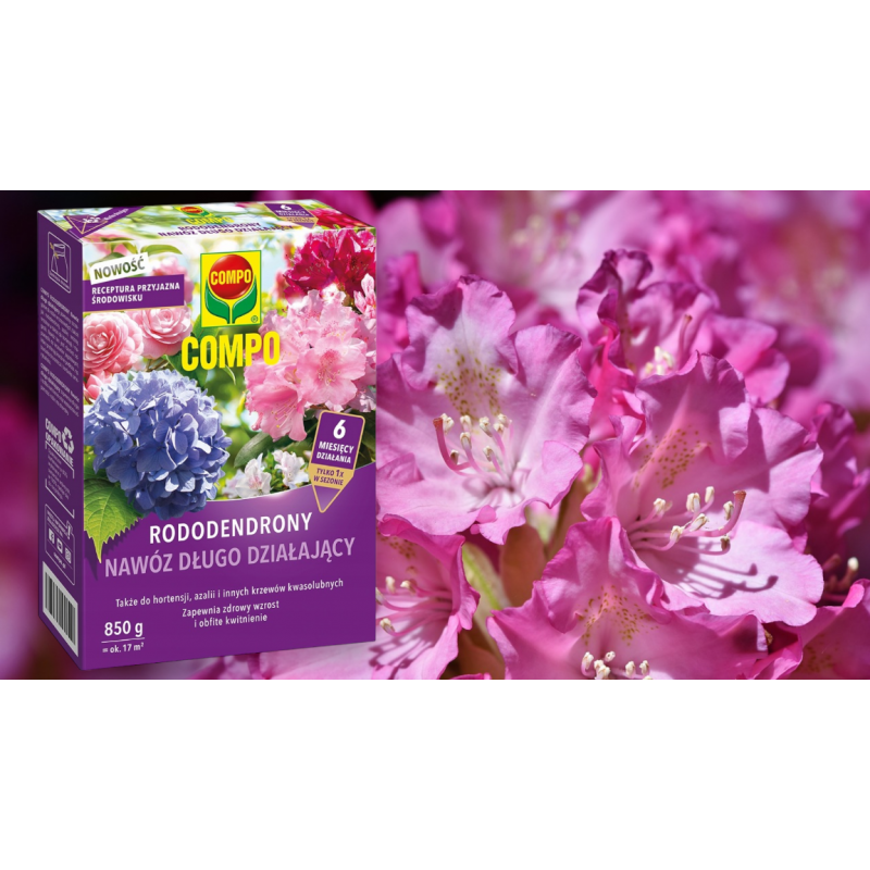 COMPO RODODENDRONY nawóz długo działający dopasowany jest do szczególnych wymagań rododendronów i krzewów kwasolubnych: