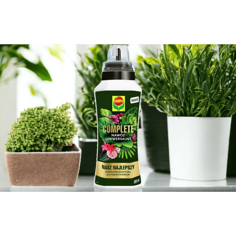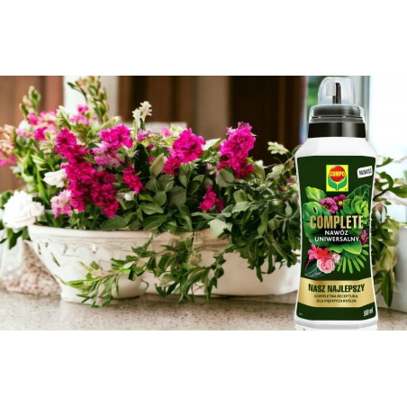 ✅ COMPLETE to najlepszy nawóz firmy COMPO specjalnie opracowany do odżywiania wszystkich roślin domowych: juk, palm, dracen, fikusów, strelicji, monster, zamiokulkasów, alokazji, bananowców, difenbachii, peperomii, zielistki, paproci, filodendronów, sansewiery, scindapsusa i balkonowych, tarasowych: pelargonii, petunii, surfinii, begonii, fuksji, lobelii, niecierpków.✅Certyfikowane surowce i bogaty skład