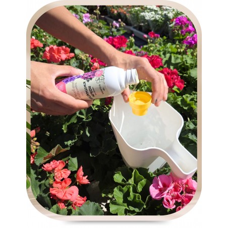 Rośliny balkonowe: 20 ml nawozu (pełna nakrętka) na 2 litry wody.