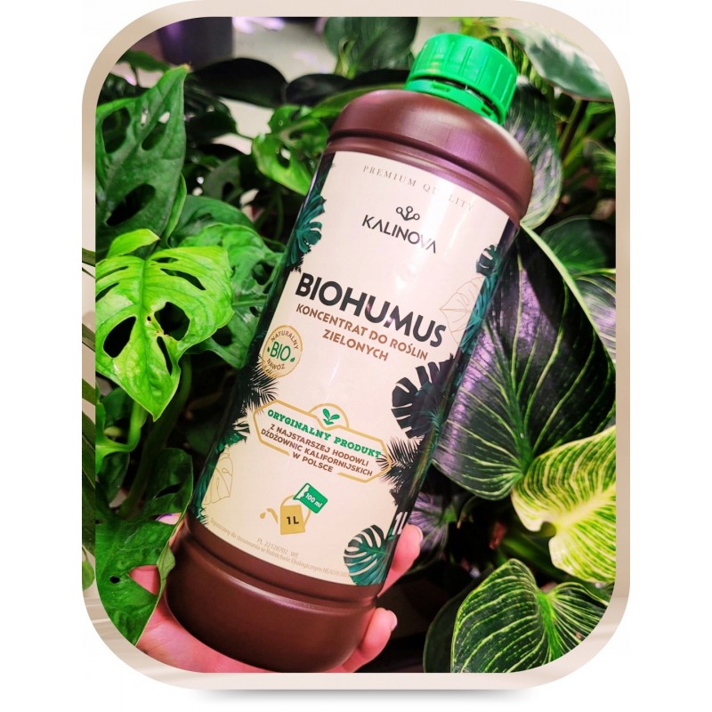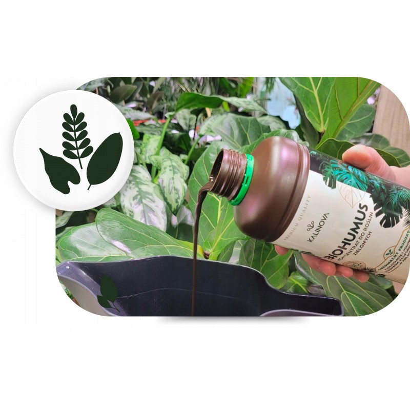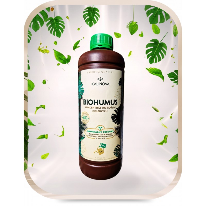 BIOHUMUS do roślin zielonych KALINOVA 1L to w 100% naturalny, żywy nawóz wytwarzany przez dżdżownice wyłącznie z materii roślinnej – bez dodatków chemii.