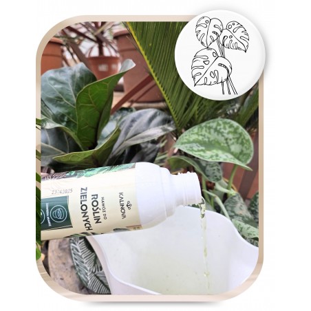 ➡️ Nawóz przeznaczony jest do roślin zielonych, takich jak monstera, zamiokulkas, ficus, filodendron, calathea, dracena, schefflera i wiele innych.