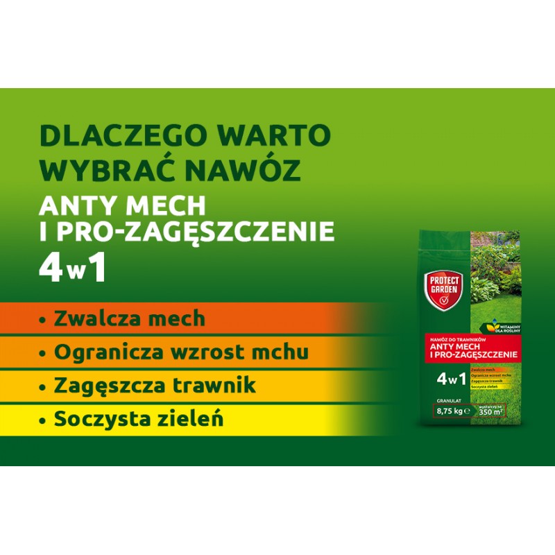 ✅ Odpowiedni dobór składników sprawia, że nawóz Anty Mech i Pro-Zagęszczenie działa na mech na kilka sposobów.