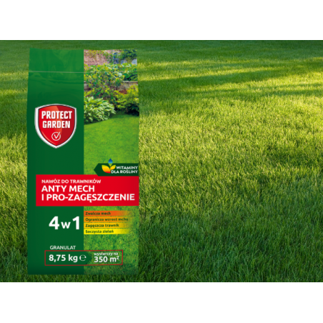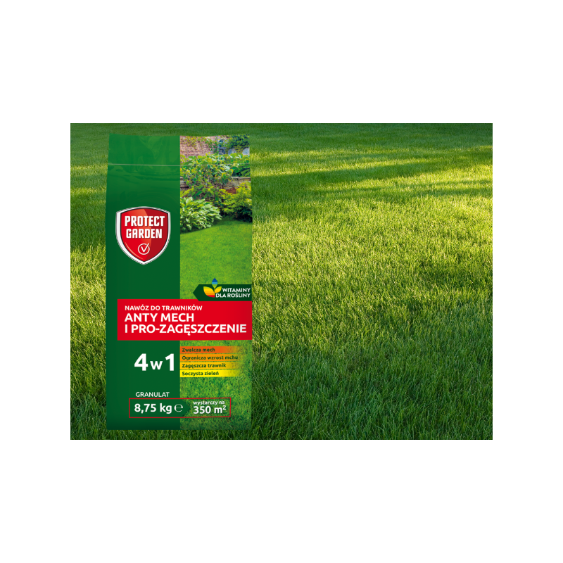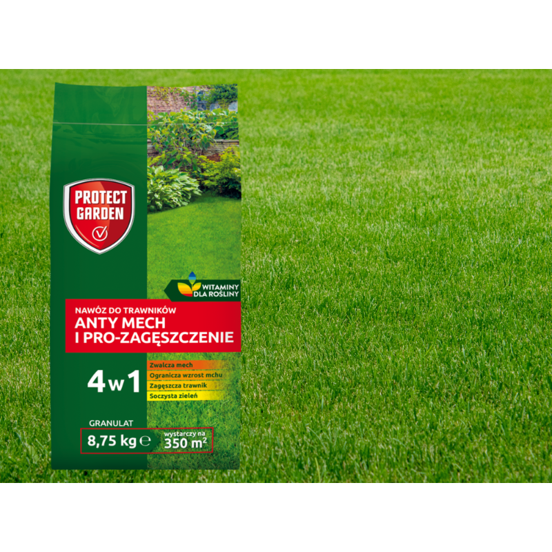 4️⃣ Stosuj na trawnik z występującym mchem albo w celu ochrony przed mchem, o powierzchni do 350 m2 (na większe areały musisz zaopatrzyć się w kilka opakowań).
