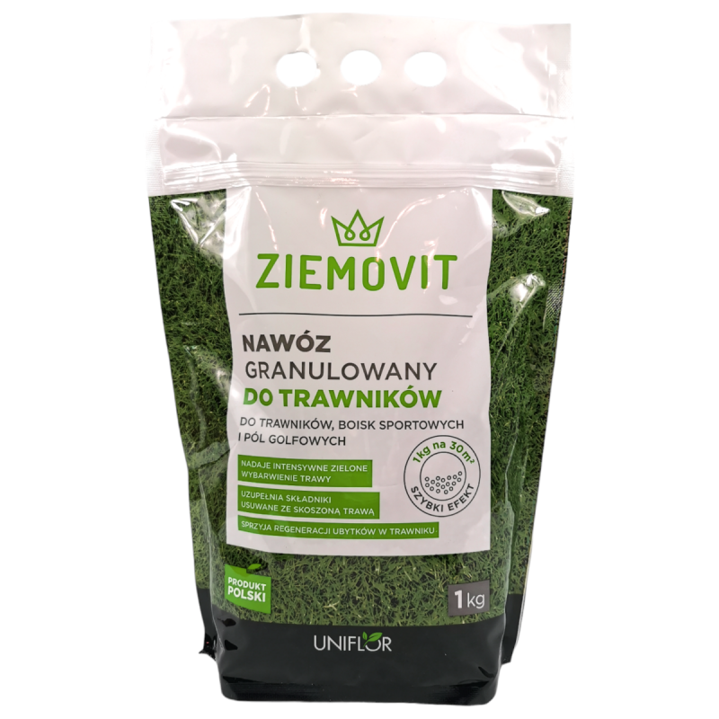➡️ ZIEMOVIT Nawóz Granulowany do Trawników jest nawozem mineralnym w wygodnej do stosowania formie granul pozwalającej na stopniowe uwalnianie składników.