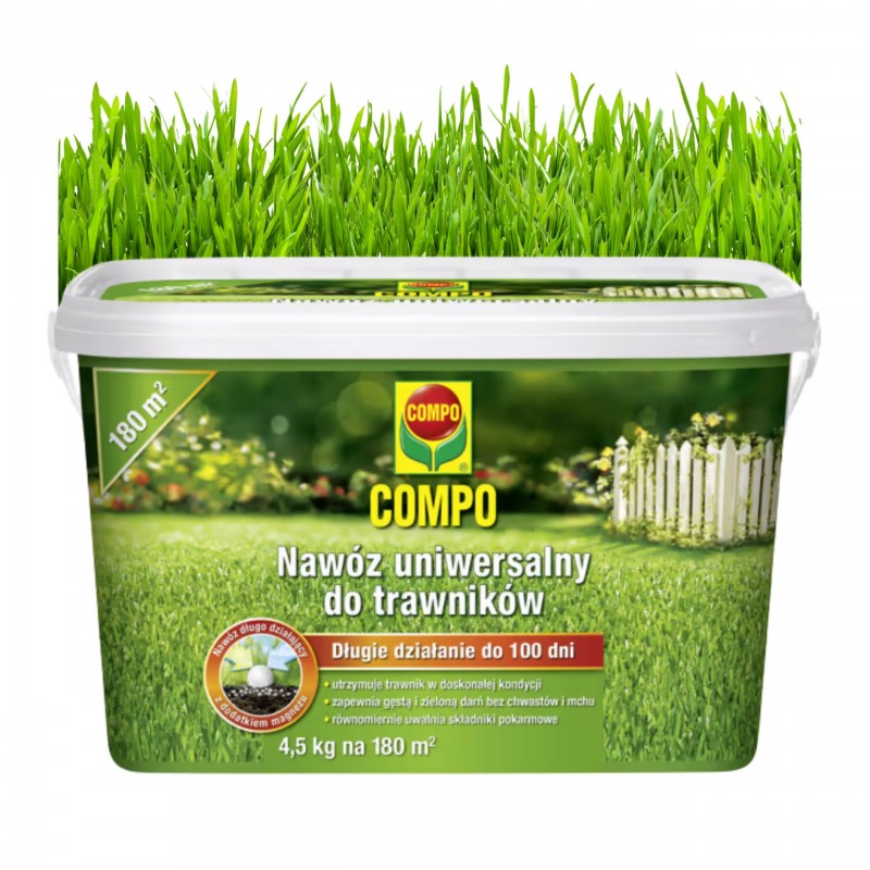 Opakowanie 4,5 kg wystarcza na 180 m2 trawnika.