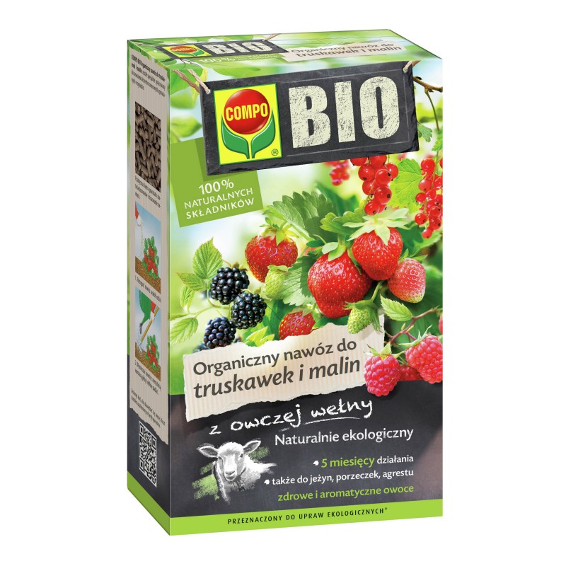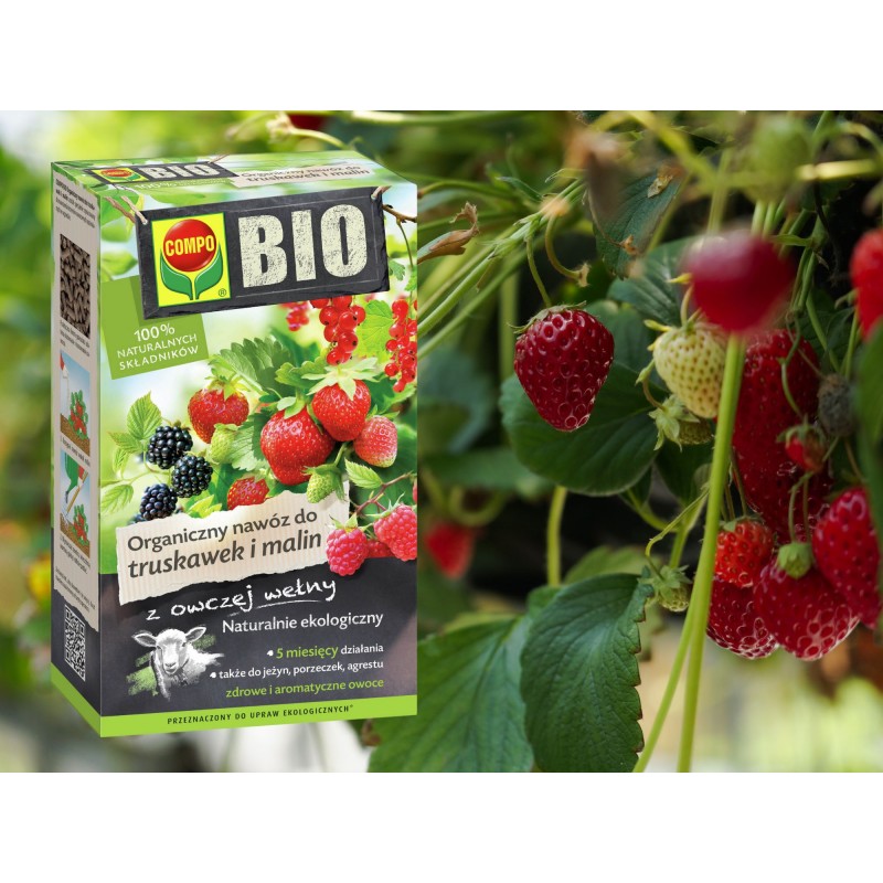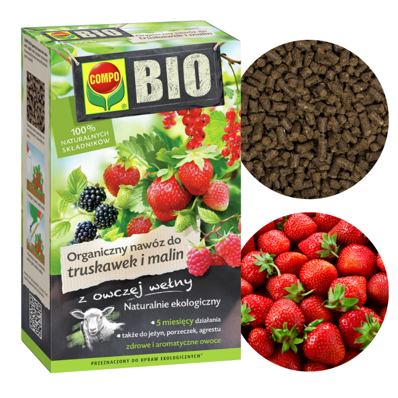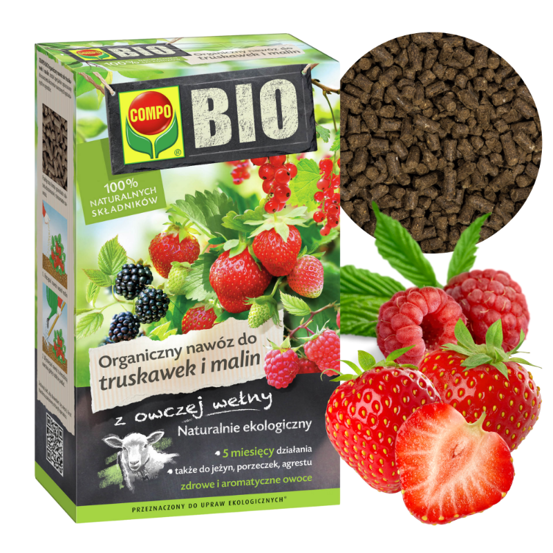➡️COMPO BIO Organiczny to specjalistyczny nawóz organiczny do truskawek, malin, porzeczek i innych krzewów owocowych uprawianych w pojemnikach i w gruncie.