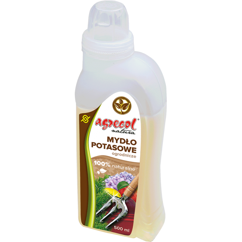 ➡️ Roztworem mydła potasowego można również zmywać zabrudzone przypadkowo powierzchnie roślin. Stosować na działkach, w szklarniach, tunelach foliowych, inspektach itp.