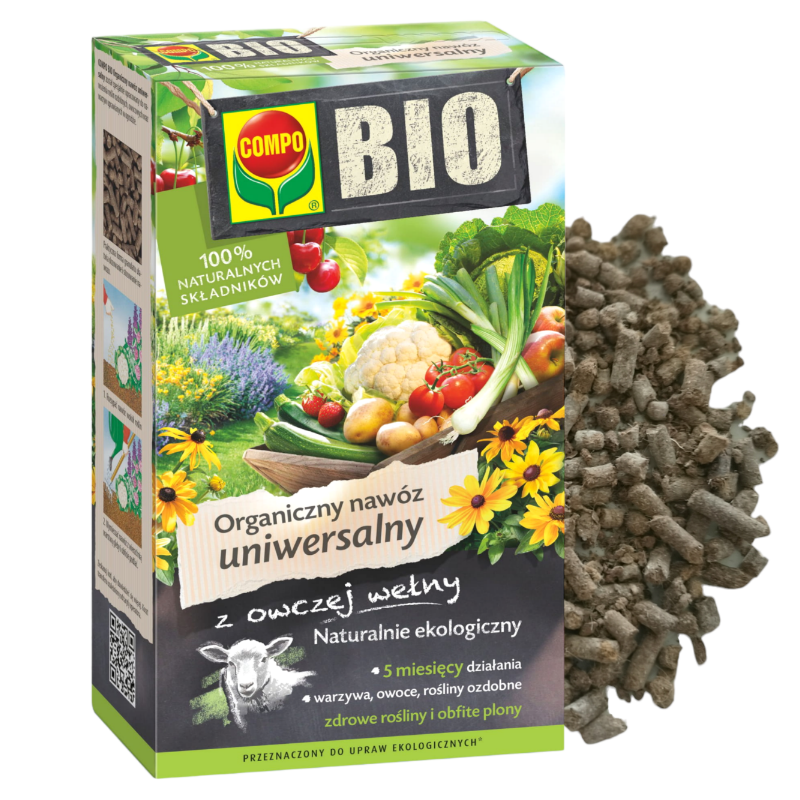 COMPO BIO Organiczny nawóz uniwersalny został specjalnie opracowany do nawożenia roślin ozdobnych, owocowych oraz warzyw uprawianych w ogrodzie.