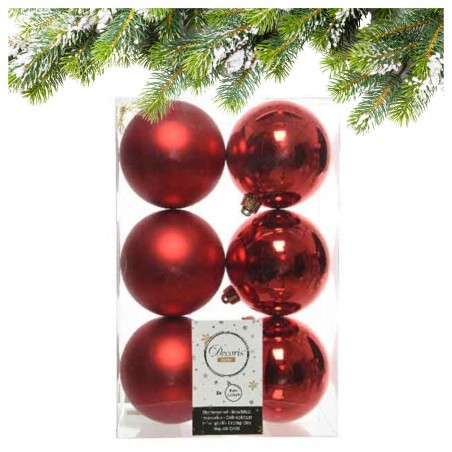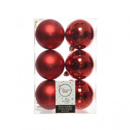 Bombki nietłukące 8 cm – czerwone połysk/mat, zestaw 6 szt.