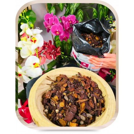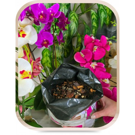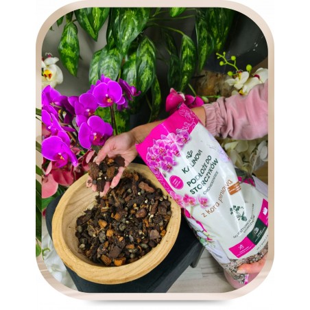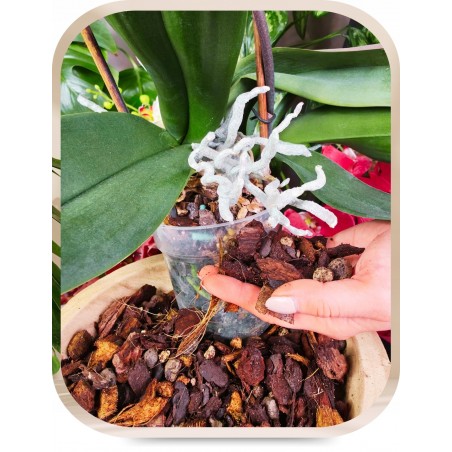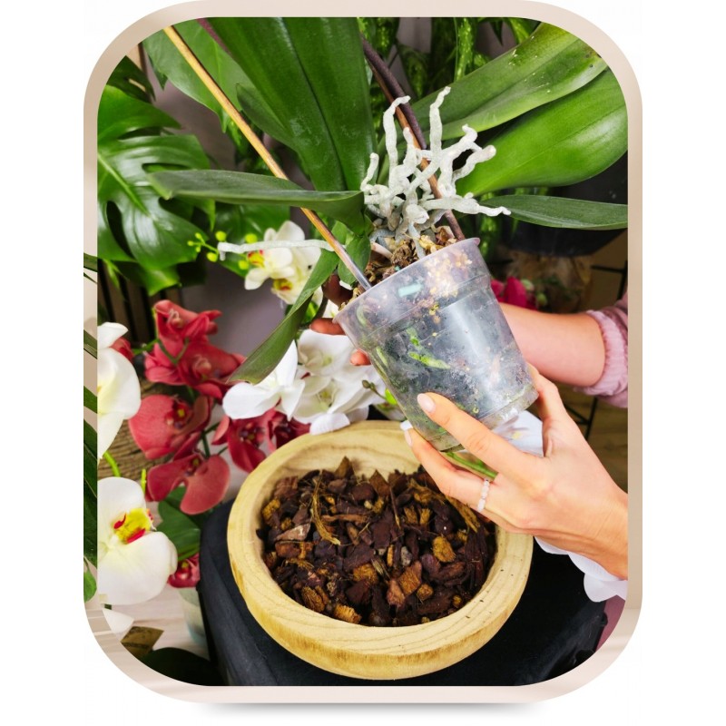 Podłoże składa się z kory piniowej, chipsów kokosowych, keramzytu i pumeksu, co zapewnia doskonałą cyrkulację powietrza, odpowiednie zatrzymywanie wody i optymalne warunki wzrostu storczyków.