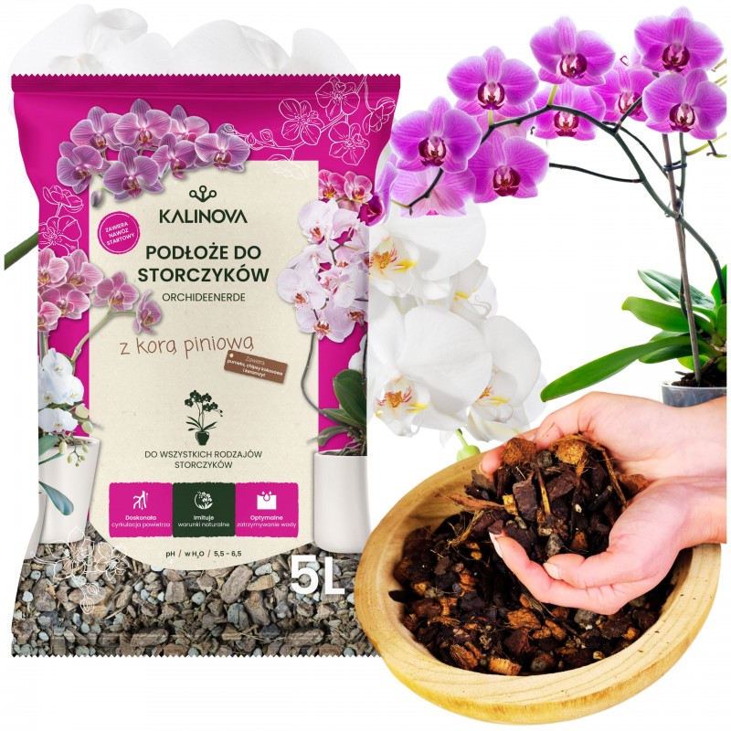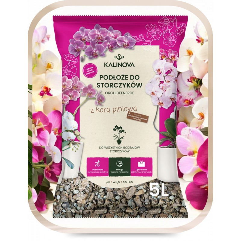 Podłoże KALINOVA jest przeznaczone do wszystkich rodzajów storczyków, szczególnie epifitycznych, takich jak Phalaenopsis, Cattleya, Dendrobium czy Vanda.