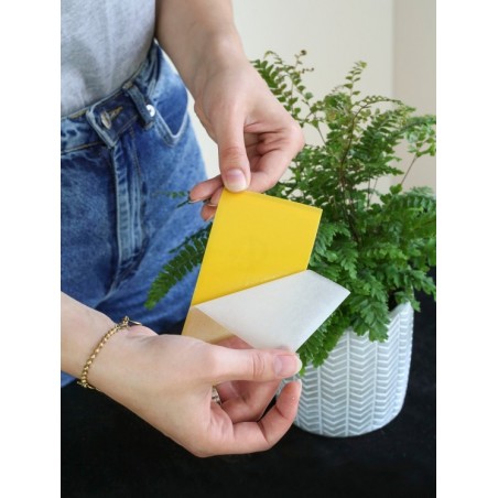➡️ Powierzchnia pułapki z obu stron pokryta jest lepką substancją, która wyłapuje szkodniki.