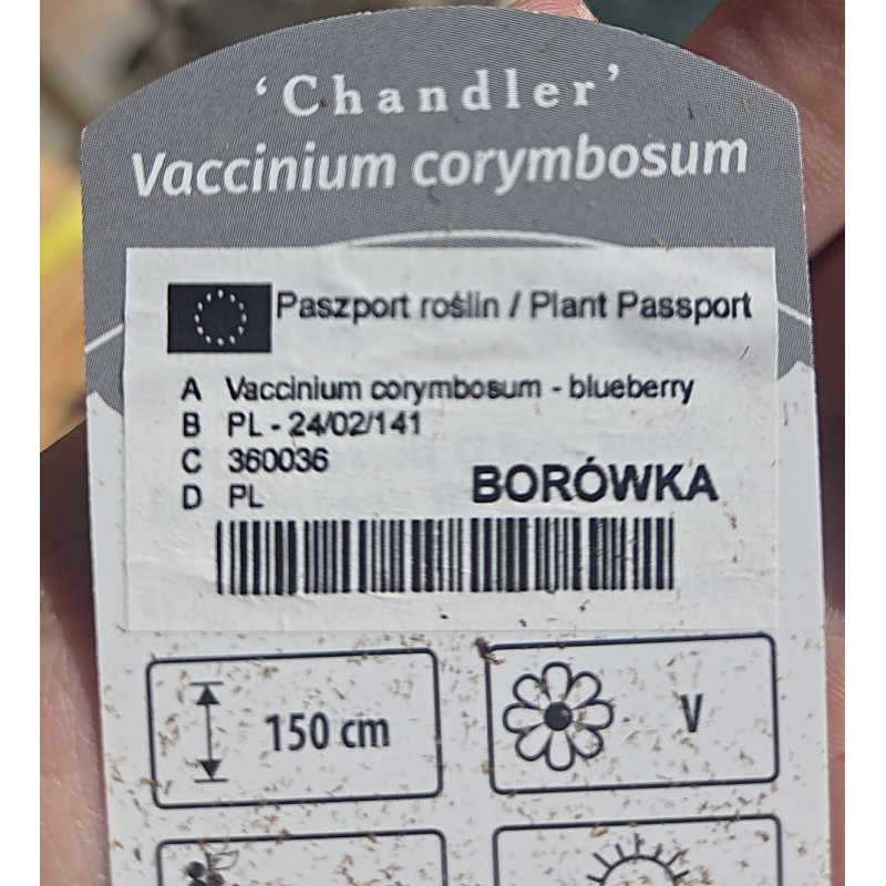 ☘️ Chandler to odmiana obcopylna – potrzebuje w pobliżu innej borówki (np. 'Bluecrop', 'Bluegold'), żeby dobrze owocować.