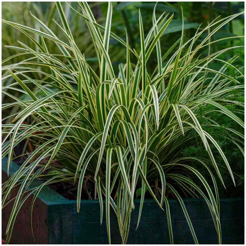☘️ Ta wyjątkowa, zimozielona trawa ozdobna pochodzi z Japonii, należy do gatunku Carex morrowii. Ceniona jest za dekoracyjne, kontrastowe ulistnienie i niezwykłą tolerancję na cień.