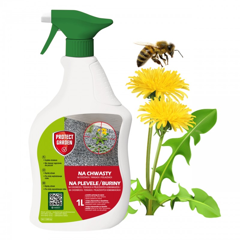 Preparat Protect Garden Natura – spray na chwasty to 100% naturalny środek, który nie zawiera szkodliwego glifosatu. Jego skład oparty jest na occie winnym, co zapewnia skuteczne działanie przy jednoczesnym zachowaniu bezpieczeństwa dla środowiska i owadów zapylających.