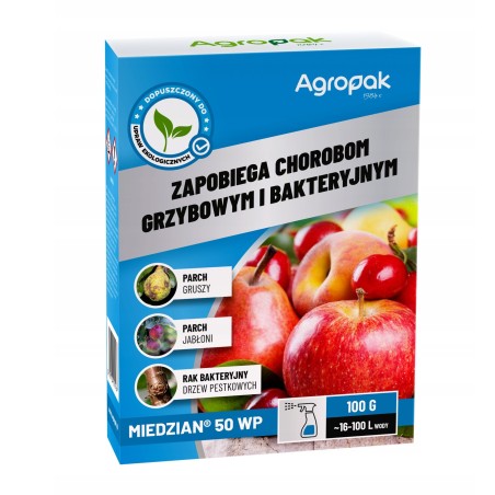 Miedzian 50 WP od renomowanej firmy Agropak to absolutny klasyk i niezbędnik każdego ogrodnika – zarówno amatora, jak i profesjonalisty.