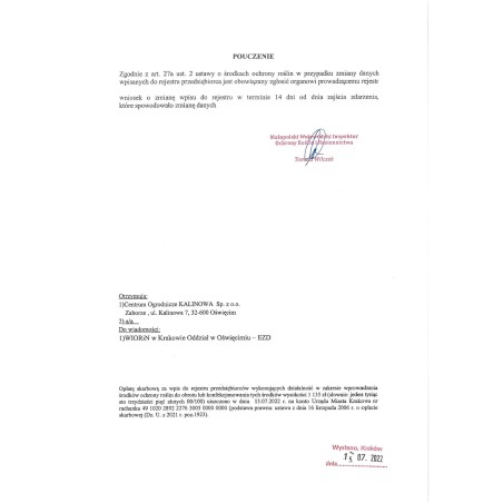Dokonując zakupu, kupujący oświadcza, że spełnia powyższe wymagania oraz zapoznał się z zasadami bezpiecznego stosowania środka ochrony roślin.
