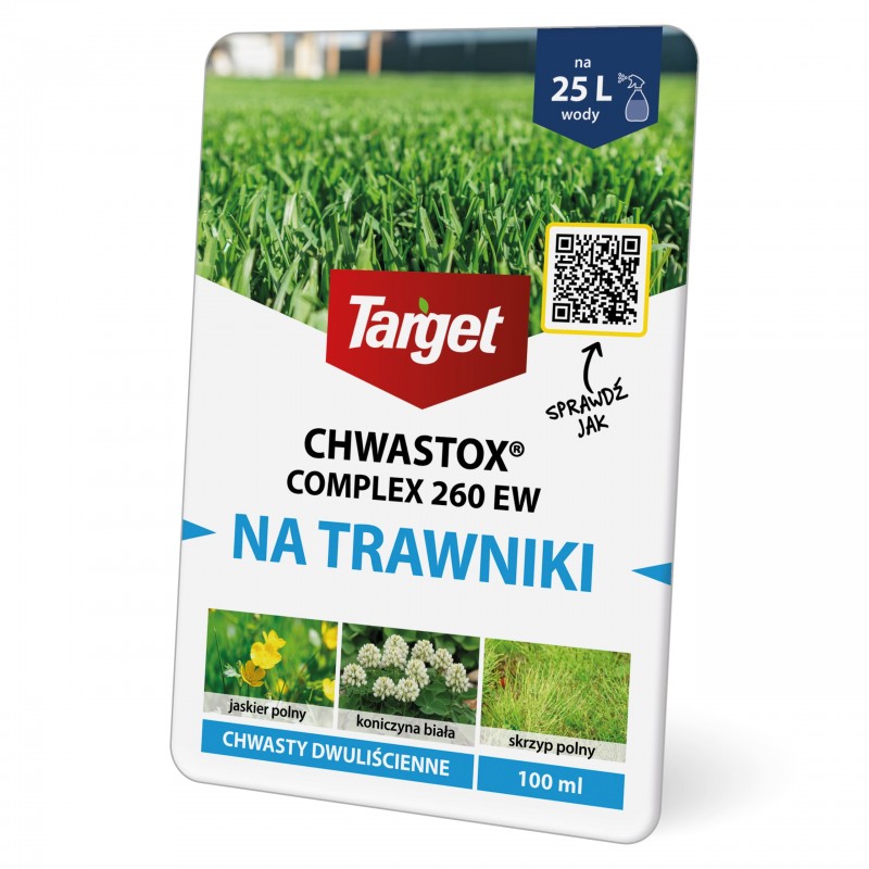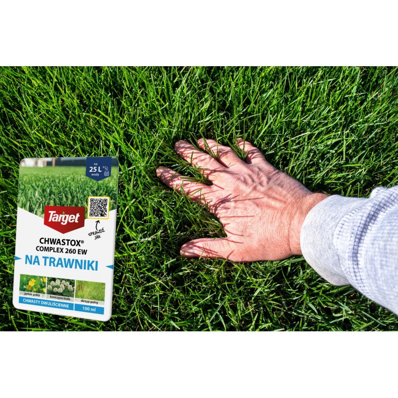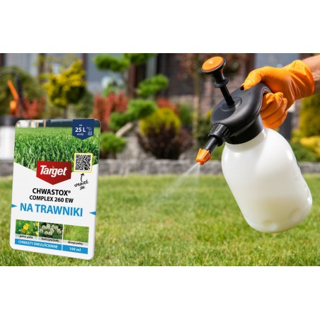 ☘️ Chwastox Complex 260 EW jest środkiem ochrony roślin – herbicydem selektywnym o działaniu układowym. Użytkowany do zwalczania chwastów w trawniku. Pobierany przez liście i przemieszczany do korzeni chwastów, powodując zahamowanie wzrostu, a następnie zamieranie.