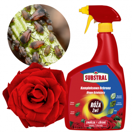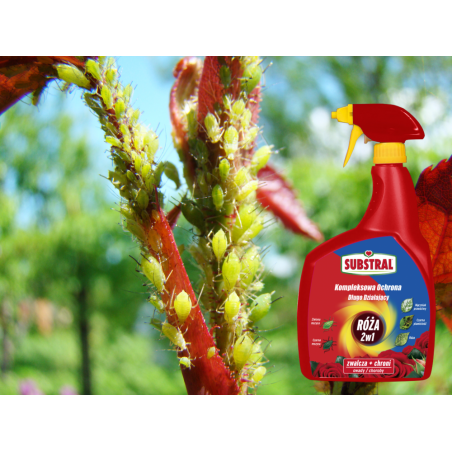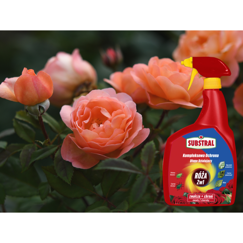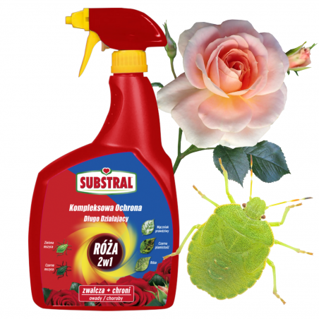✔️Substral Kwiaty Kompleksowa Ochrona 2w1 będący jednocześnie insektycydem i fungicydem jest środkiem grzybobójczym i owadobójczym w formie sprayu gotowego do użycia, o działaniu systemicznym stosowanym w zapobiegawczej i interwencyjnej walce z chorobami grzybowymi, mszycami i innymi owadami powszechnie atakującymi amatorskie uprawy roślin ozdobnych (m.in. róże, rośliny rabatowe, krzewy ozdobne).