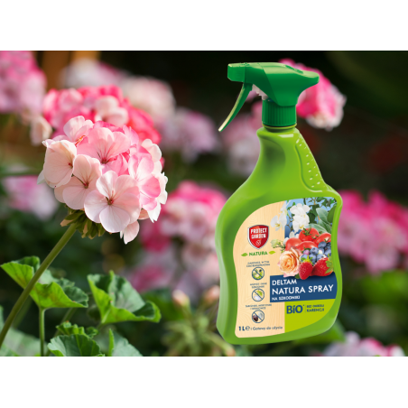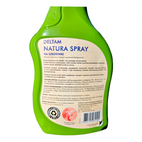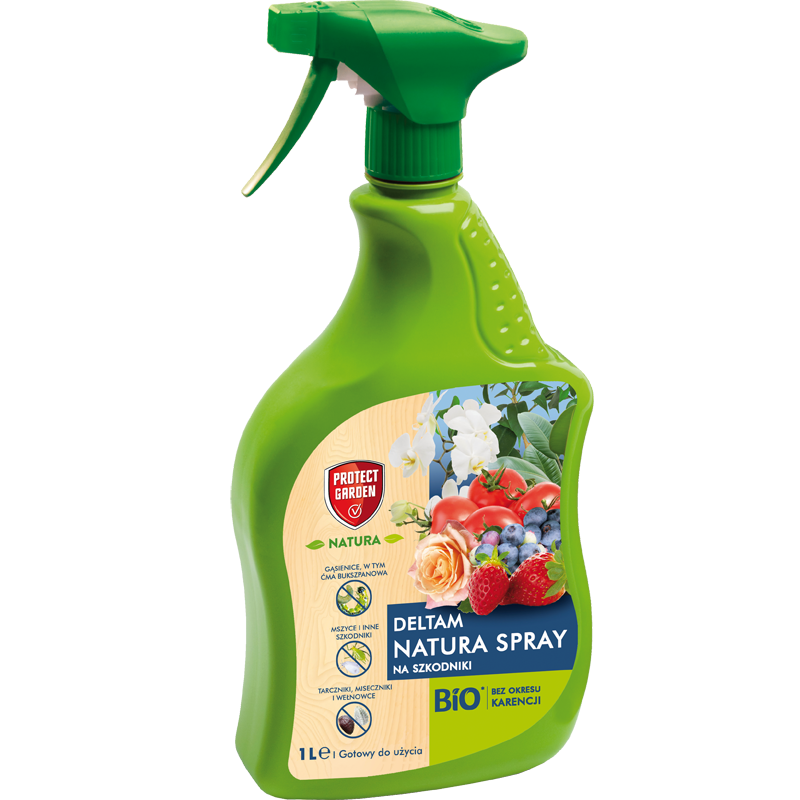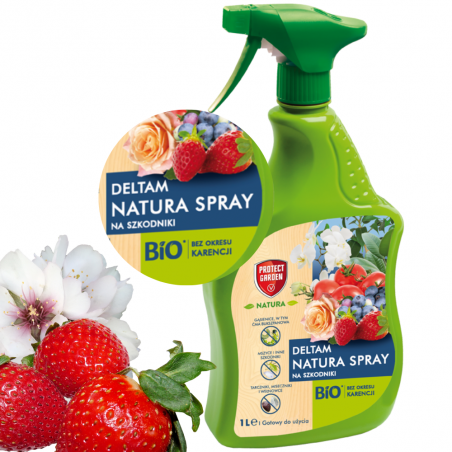 1️⃣ Deltam Natura Spray to środek gotowy do użycia, nie wymaga rozcieńczania, wystarczy przekręcić dyszę na spryskiwaczu w pozycję „ON” i można rozpocząć zabieg na roślinie.