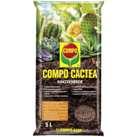 COMPO SANA Podłoże do kaktusów i sukulentów 5L to wysokiej jakości specjalistyczne podłoże dedykowane do uprawy różnego rodzaju kaktusów w domu i szklarni. Dzięki ekskluzywnej recepturze, ten nawóz wzbogacony o piasek i zapewnia optymalną gospodarkę wodną, co ma kluczowe znaczenie dla zdrowia i wzrostu roślin.