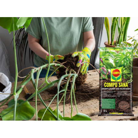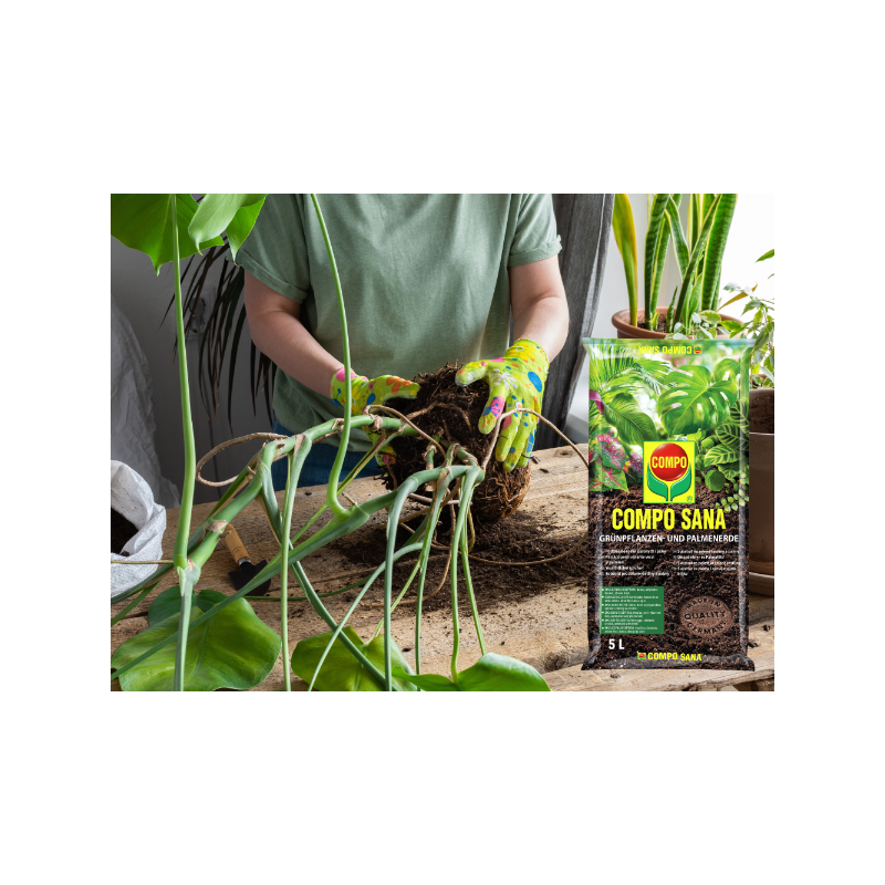 ➡️ Zapewnij dobry drenaż, aby zapobiec zalaniu wodą i gniciu korzeni. Zalecamy najpierw wypełnić pojemnik do sadzenia w 1/4 do 1/3 granulatem do drenażu i sadzenia. Następnie dodaj do pojemnika ziemię COMPO SANA®.
