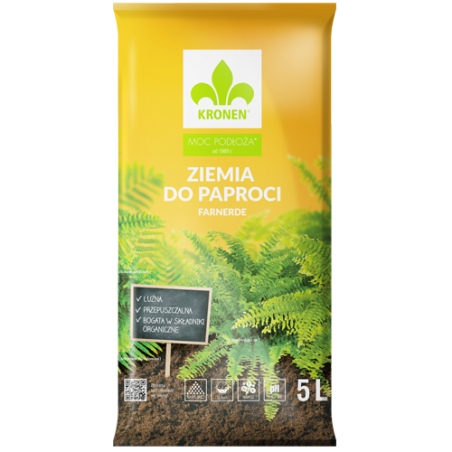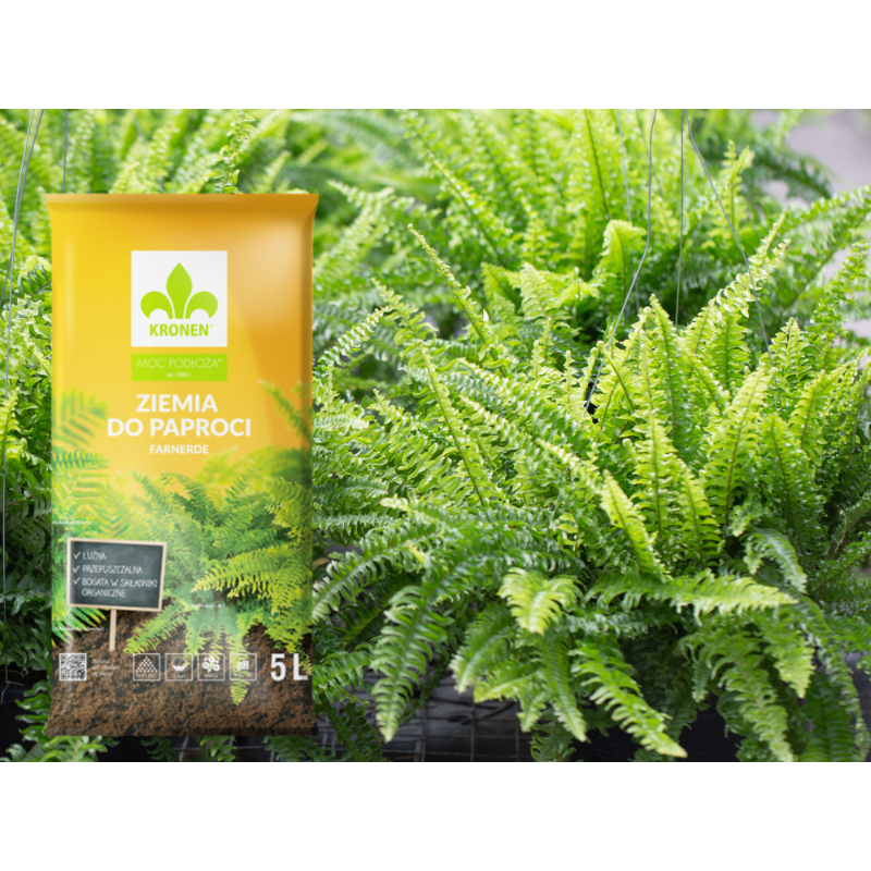 ⭐️ KRONEN® Ziemia do paproci to gotowe podłoże do sadzenia i przesadzania paproci i innych roślin wymagających luźnego, przepuszczalnego i bogatego w składniki odżywcze podłoża.