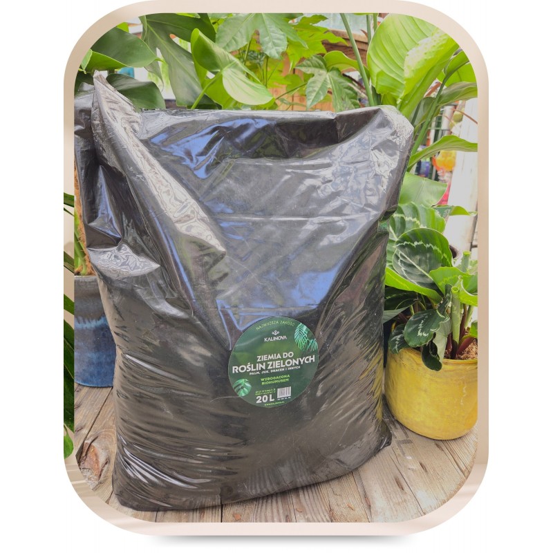 Ziemia do roślin zielonych z biohumusem KALINOVA została stworzona z myślą o roślinach ozdobnych z liści, takich jak: monstera, palma, juka, dracena, fikus, zamiokulkas, aglaonema, itp.